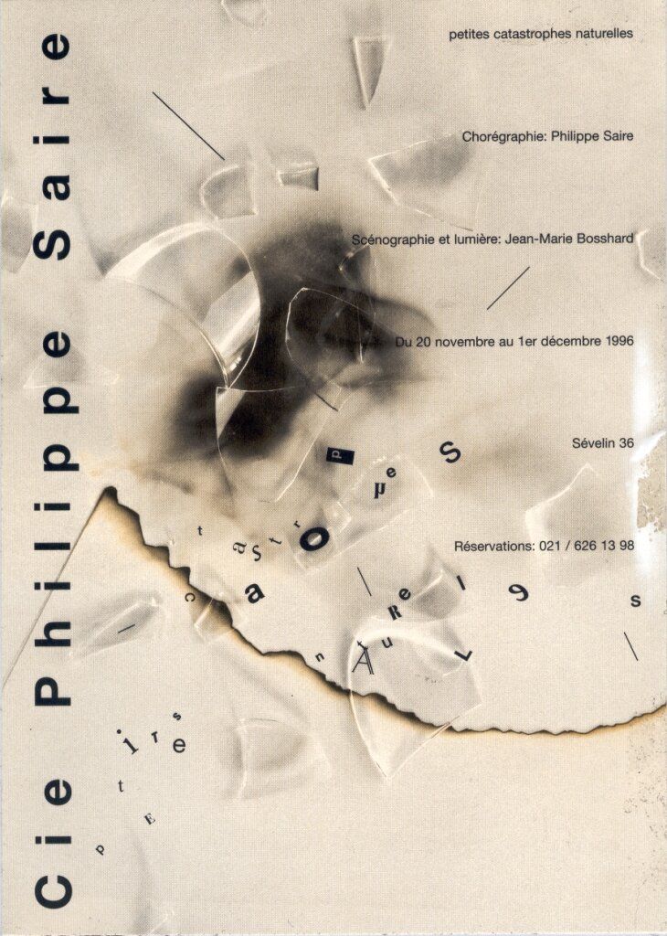 Small natural disasters is a return to Philippe Saire’s more narrative style. This piece is indeed a “story” that of a relationship which, because of its triangular nature, prevents desires ever being fully satisfied. As in Harold Pinter’s Betrayal, the characters’ interactions become steadily more corrupted by small deceits, falsehoods, compromises: “natural disasters” which, although minor in themselves, have a disproportionate power of destruction.
