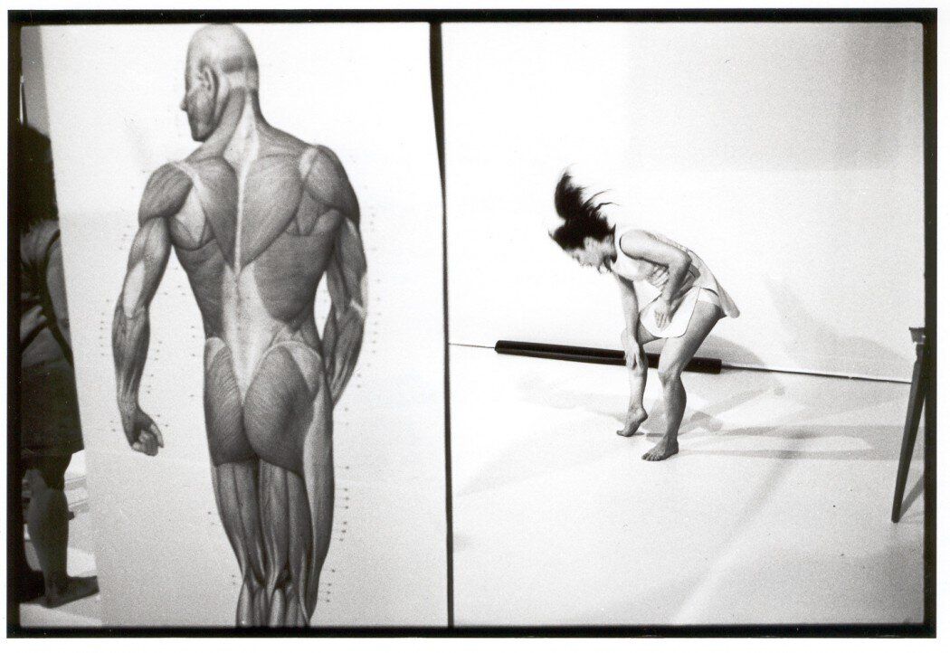 « Etude sur la légèreté »: les trois danseuses et trois danseurs de la Compagnie Philippe Saire mesurent eux-mêmes leurs pouls, s’auscultent les bras, les jambes pour juger de leur souplesse et de leur poids, et ils vont jusqu’à enlever leurs habits, qui évoquent des blouses de médecin. Les gestes et pas vont droit au but, comme si les danseurs bougeaient avec le flux lymphatique, qui dans notre organisme, sépare le bon grain de l’ivraie. Les pas, qui doucement prennent l’empreinte au sol, s’accélèrent pour jaillir en courses explosives. La vitesse permet de voler. Mais l’homme reste ce qu’il est. Il reste aussi éloigné du chant mélodieux de l’oiseau porté par le vent printanier dans l’espace blanc, que des planches anatomiques qui pendent du ciel de la scène, comme dans une salle d’étude.
